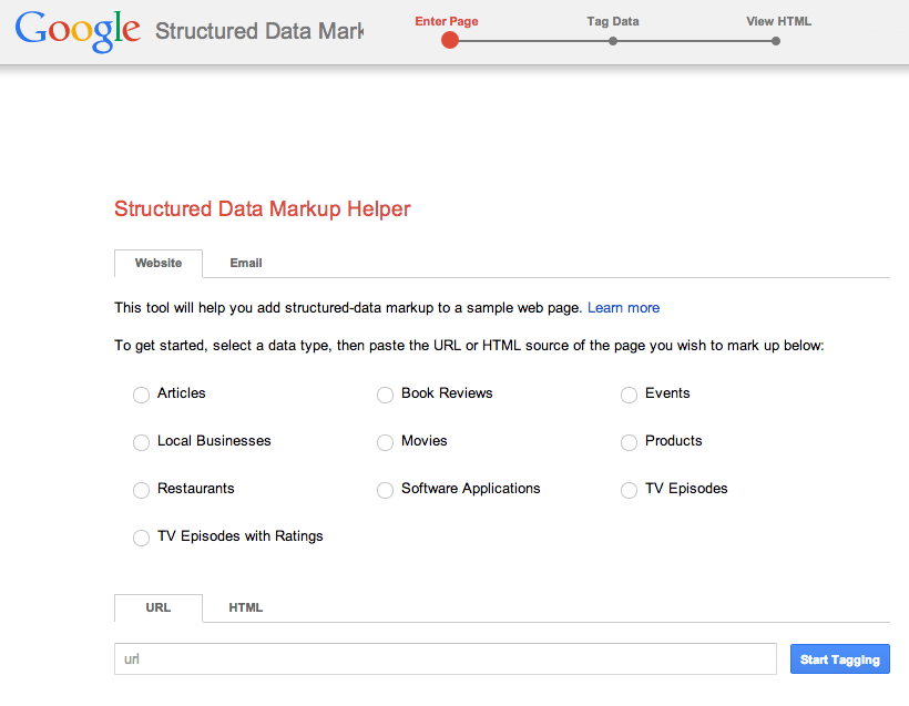 If you only have HTML, you can paste that instead. Then, click “Start Tagging.”