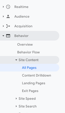 To get to that report, click on “Behavior,” then “Site Content,” and then “All Pages.”