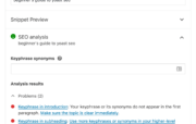Once you’ve entered your focus keyphrase, the SEO analysis checks the presence of your focus keyphrase in: