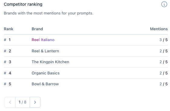 - Benchmark against competitors: see how often your brand comes up